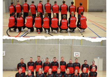 Selectie en Achilles A1 in nieuwe trainingspakken gestoken door sponsoren.